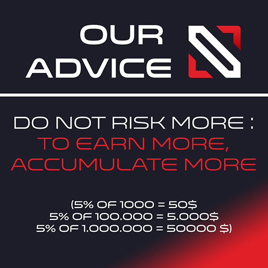 برخی از معامله گران معتقدند که این در مورد یافتن سیستمی است که درآمد شگفت انگیزی داشته باشد، تمام وزن را بر روی سیستم بگذارد و 100٪ ماهیانه بسازد. اما درک این نکته ضروری است که سود و ریسک دست به دست هم می دهند. راز ما و توصیه ما این است که دیگر ریسک نکنید، بلکه سرمایه خود را کم کم افزایش دهید، حتی مقداری دوره ای به موجودی خود اضافه کنید تا به مقدار کافی پول به دست آورید، حتی اگر ریسک را به تدریج کاهش دهید. آرزو کردن.