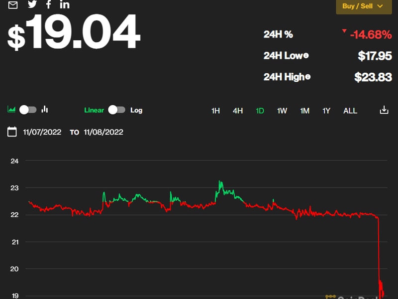 FTT در ساعت گذشته نزدیک به 12 درصد و در 24 ساعت گذشته بیش از 20 درصد کاهش یافت.