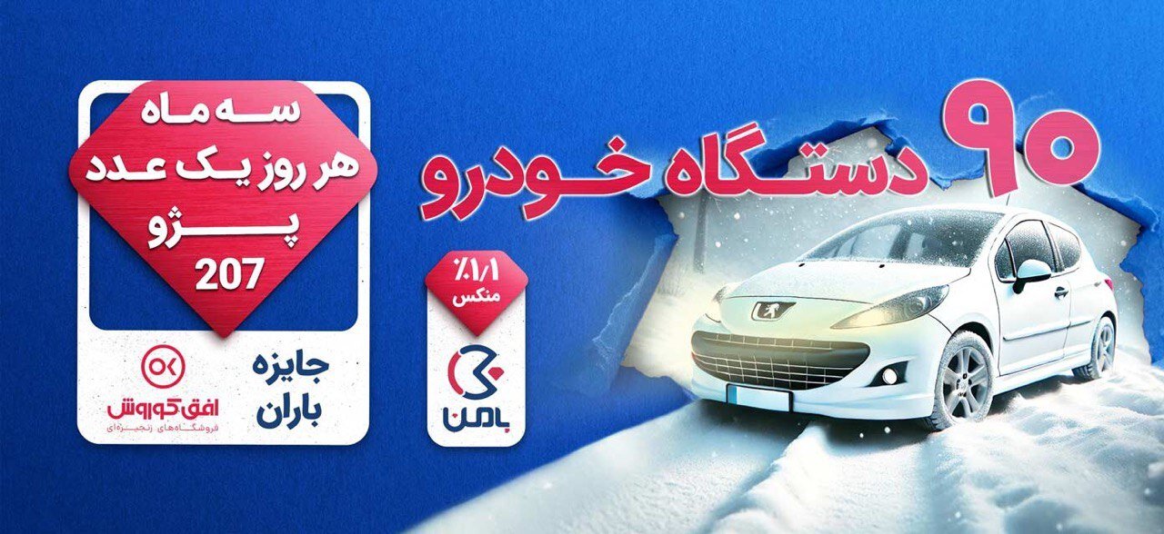 این فرصت استثنایی را از دست ندهید و با شرکت در کمپین جایزه باران افق کوروش، علاوه بر بهرهمندی از محصولات باکیفیت، همین امروز شانس خود را برای برنده شدن یکی از ۹۰ دستگاه پژو ۲۰۷ محک بزنید!