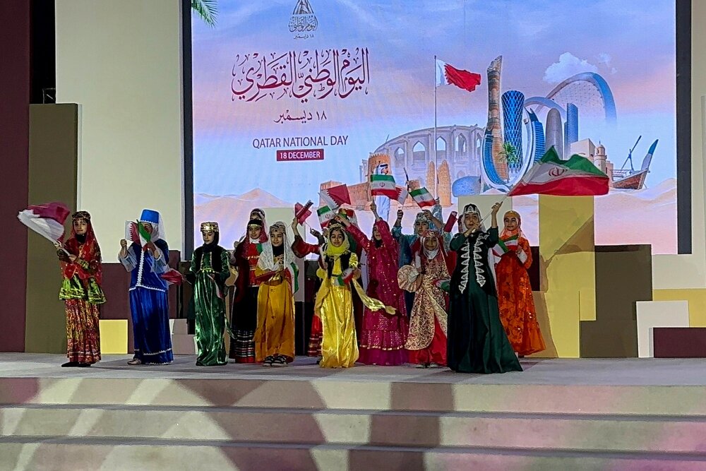 در بخش دیگری از این مراسم، گروهی از دانشآموزان مدرسه دخترانه ایرانیان قطر با لباسهای محلی ایرانی حضور یافتند و در دو بخش مهم راهپیمایی کشورهای مقیم و «اجرای در جایگاه» به معرفی لباسهای اقوام ایرانی و سرود جمهوری اسلامی ایران پرداختند.