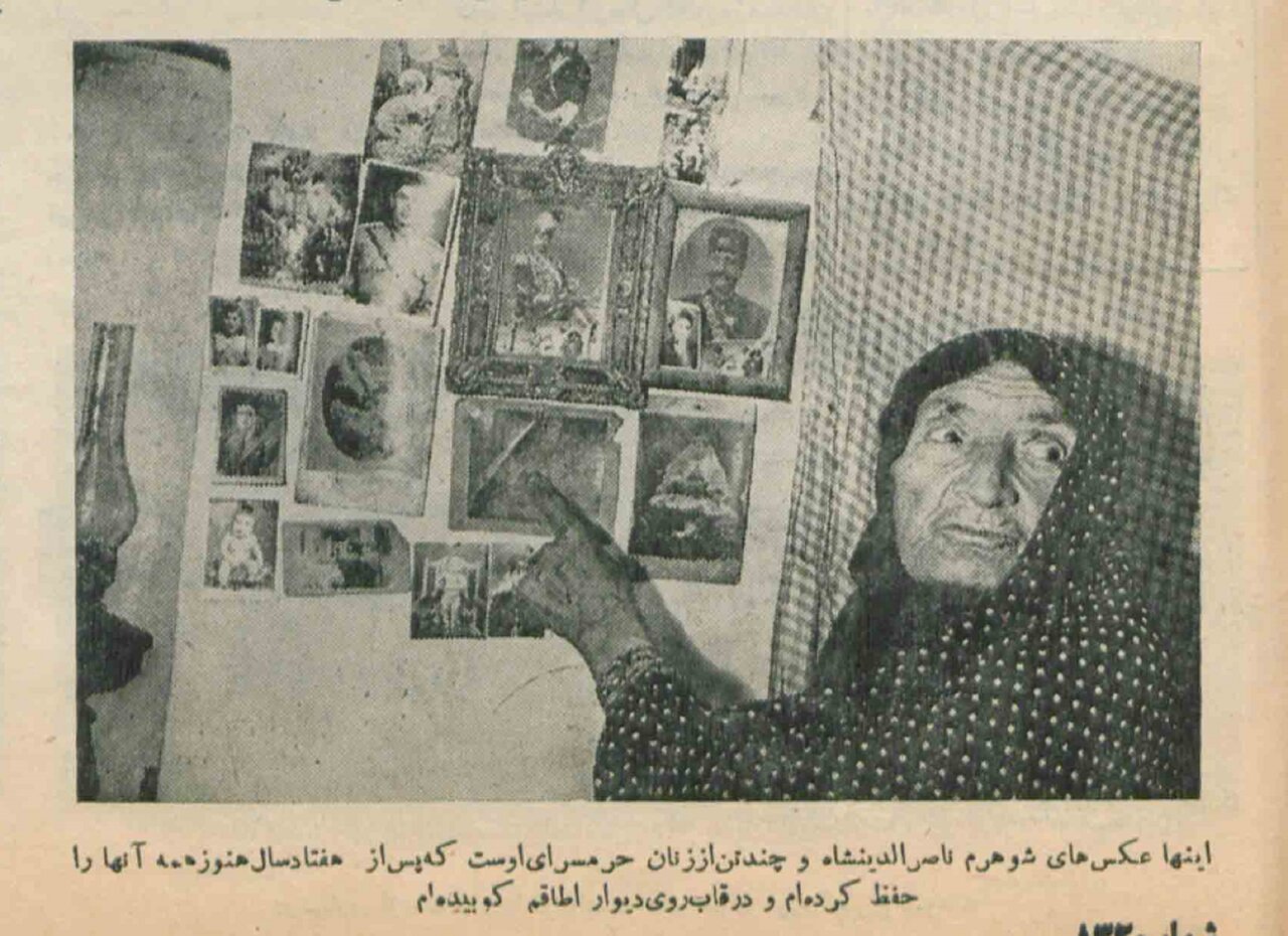 به گزارش خبرگزاری خبرآنلاین، در هفتهی آخر مرداد ۱۳۳۶ درست ۶۱ سال پس از کشته شدن ناصرالدین شاه قاجار به دست میرزا رضا کرمانی، خبرنگار اطلاعات هفتگی با سوژهی جالبی مواجه شد، او توانست یکی از زنان صیغهای ناصرالدینشاه قاجار را پیدا کند. «زیور حاجصالح» را «خانم بالا» صدا میزدند. او که یکی از ۶۴ بانوی حرمسرای ناصری و به مدت ۱۰ سال زوجهی شرعی شاه شهید بود، حالا او در آن تابستان ۱۳۳۶ که ۹۵ سال از عمرش میگذشت در یکی از اتاقهای کوچک چهار در دو متر خانهای دورافتاده در گلوبندک زندگی میکرد که آن هم بر اثر لطف یک زن خیر به طور رایگان در اختیارش گذاشته شده بود و به عنوان یکی اعضای خانوادهی او در میان آنها باقی عمرش را میگذرانید. خانم بالا پذیرفت خاطراتش را از حرمسرای ناصری تعریف کند. آنچه در پی میخوانید نخستین قسمت از خاطرات او به نقل از مجلهی «اطلاعات هفتگی» به تاریخ یک شهریور ۱۳۳۶ است: