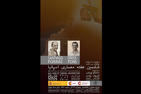 ششمین هفته معماری اسپانیا که به همت بخش فرهنگی سفارت این کشور در ایران برگزار می‌شود، عصر پنجشنبه ۲۳ آذر ۱۴۰۲ ساعت ۱۵:۳۰ در سالن جلیل شهناز افتتاح می‌شود.
