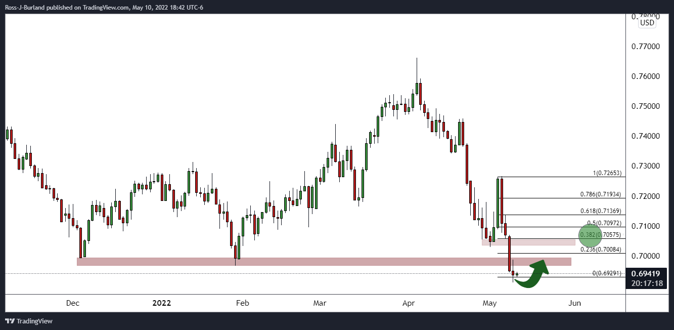 • خرس‌های AUD/USD پس از اصلاح روزانه 38 درصدی حرکت می‌کنند.