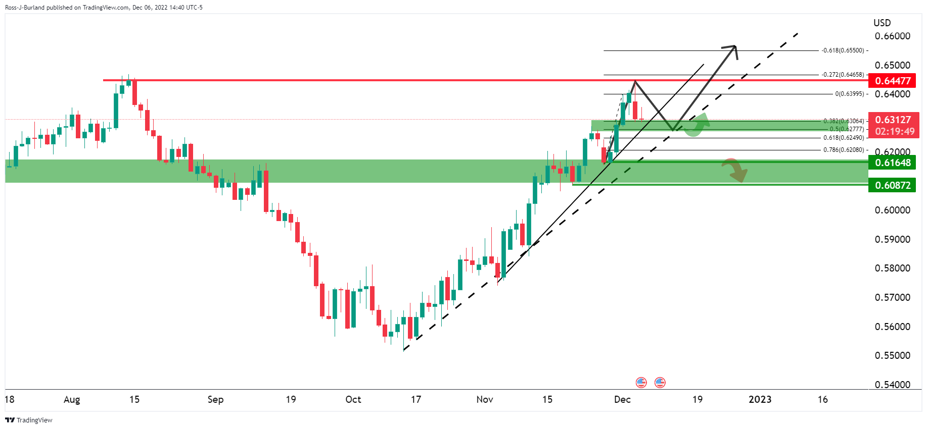 با این حال، اگر اصلاح قابل توجهی در نقدینگی نزدیک به 0.6250 وجود داشته باشد، اگر گاوها دوباره درگیر شوند، ممکن است حرکتی برای عبور پرنده از طریق مقاومت در روزها/هفته های آینده ایجاد شود.