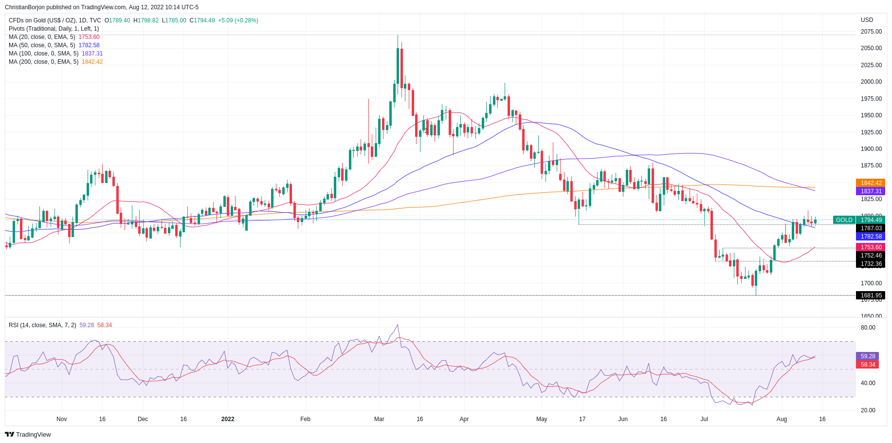 سهام جهانی در حال ثبت سود هستند که نشان دهنده افزایش ریسک پذیری است. در زمان تایپ، احساسات مصرفکننده دانشگاه میشیگان برای آگوست بهتر از حد تخمینها بود، در برابر 52.5 مورد انتظار، 55.1 بود، در حالی که انتظارات تورمی برای یک سال، از 5.2 درصد به 5 درصد کاهش یافت، در حالی که برای افق پنج ساله. افزایش از 2.9% به 3.0%.