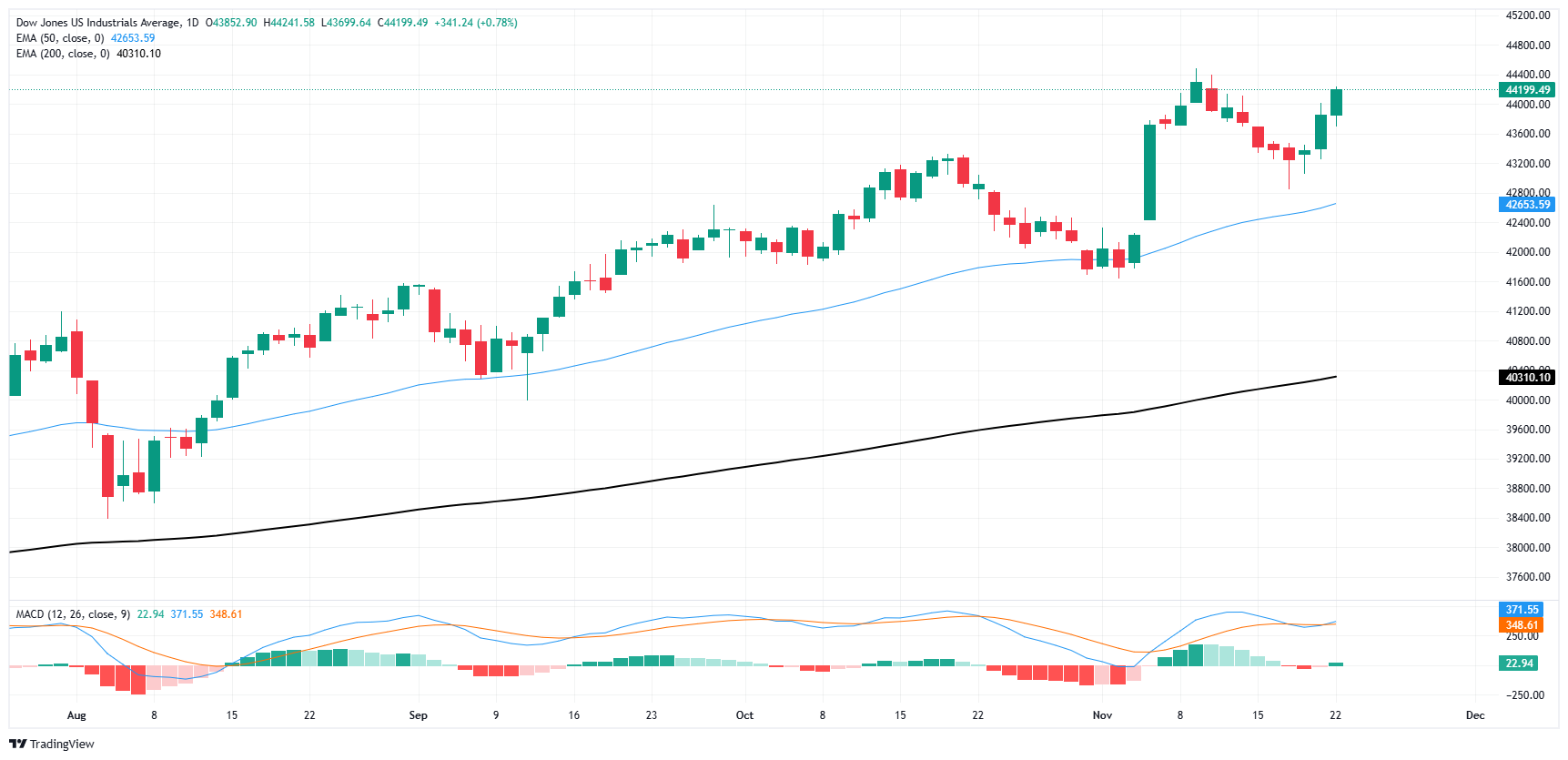 گاوهای داوجونز همچنان قیمتها را بالا نگه میدارند و در مقابل هرگونه سیگنال فنی نزولی معنیدار قرار نمیگیرند. شاخص اصلی سهام در نوامبر حدود 5.8 درصد افزایش یافته است، بهترین عملکرد شاخص تا به امروز، و 18 درصد نسبت به پیشنهادات افتتاحیه در سال 2024 افزایش یافته است.