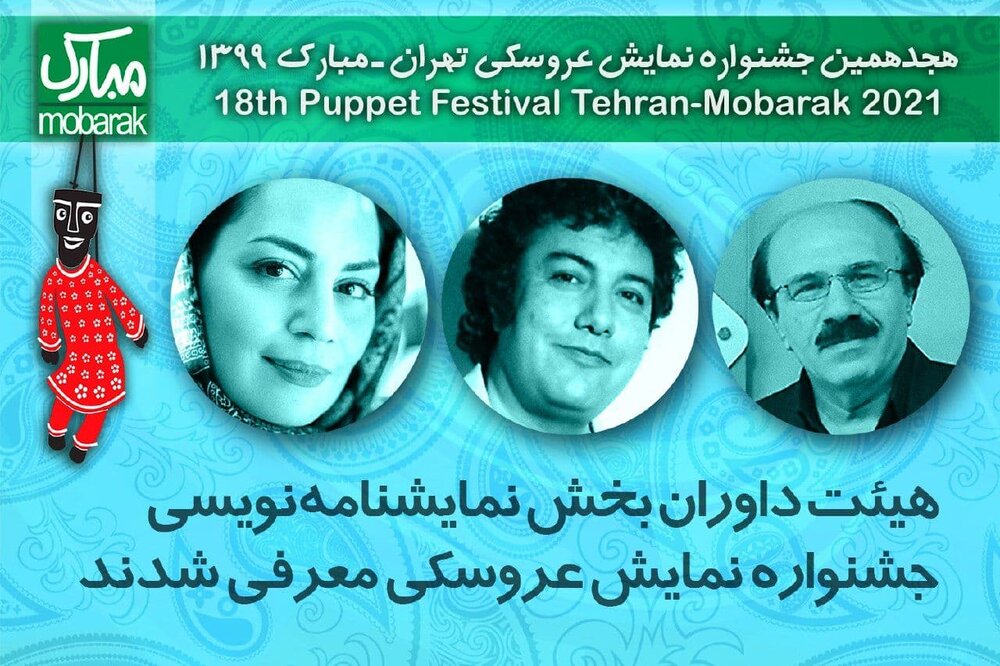 به گزارش خبرگزاری خبرآنلاین، گروهی سه نفری متشکل از نادر برهانی مرند (نمایشنامهنویس و کارگردان تئاتر و تهیهکننده فعال در رادیو)، اردشیر صالحپور (نویسنده، پژوهشگر و مدرس تئاتر) و شادی پورمهدی (نمایشنامهنویس و مترجم تئاتر)، داوری آثار مسابقه نمایشنامهنویسی هجدهمین جشنواره نمایش عروسکی تهران-مبارک را بر عهده دارند.