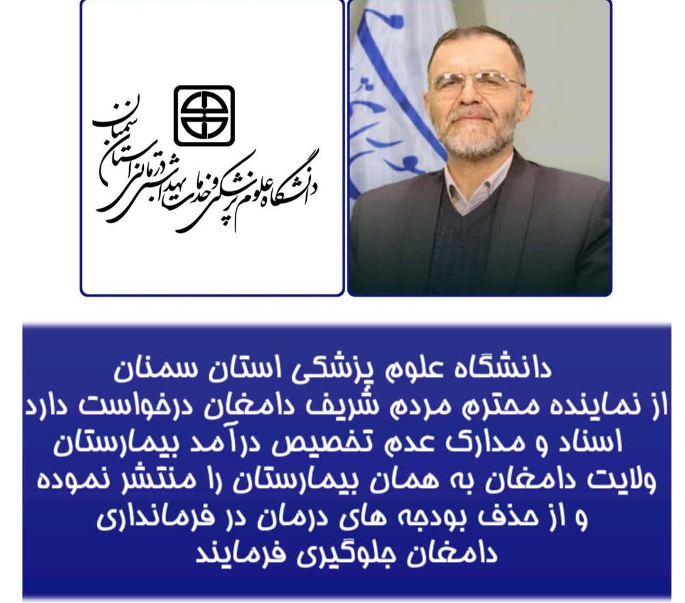 همچنین از نماینده محترم تقاضا دارد چنانچه دغدغهمند تقویت حوزه بهداشت ودرمان دامغان هستند از حذف بودجه بهداشت و درمان در شورای برنامهریزی شهرستان که خود و فرماندار محترم عضوی از آن هستند جلوگیری کنند و اعتبارات حذف شده در چند سال متوالی را به آن برگردانند.
