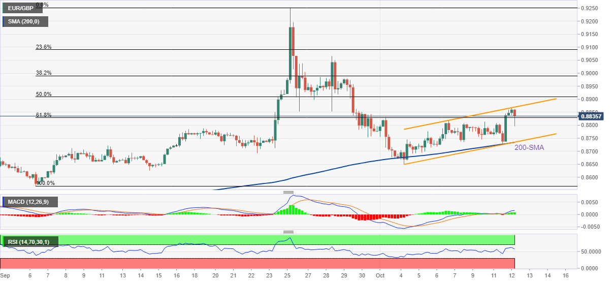 لازم به ذکر است که MACD و RSI (14) هر دو طرفدار صعود بیشتر قیمت هستند. با این حال، بالای کانال فوق، نزدیک به 0.8870، از بازگشت فوری جفت EUR/GBP محافظت می کند.