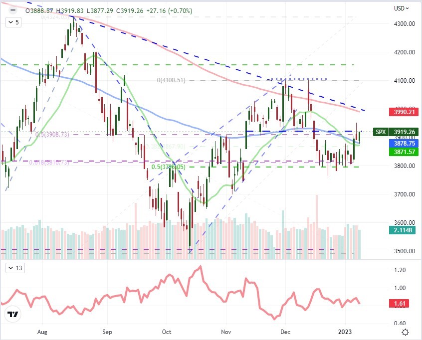 در همین حال، بازارها روند مورد انتظار تغییر از انگیزه به پیش بینی را دنبال می کنند. افزایش غیرمنتظره روز جمعه از سوی شاخصهای ایالات متحده به دنبال ارقام اشتغال نسبتاً بهتر از انتظار و افت شدید فعالیت بخش خدمات، با بازگشت روز دوشنبه به سکوت آشکار تبدیل شد و اکنون این جلسات گذشته جهش کرده است. صعود متوسط 0.7 درصدی از S&P 500 تا حد عدم قطعیت است در حالی که هر دو ترکیب میانگینهای متحرک ساده 20 روزه و 100 روزه را حفظ میکنند، هرچند که به نوبه خود به دقت فنی پشتیبانی از سر و شانه سابق فشار میآورد (11 نوامبر). تا 14 دسامبر). در شستشوی قبل از خطر رویداد بزرگ، میتوانیم نقدینگی رقیقتر، نوسانات بالاتر و فرسایش در استحکام موانع فنی را مشاهده کنیم. این زمان خوبی برای درون گرایی است.