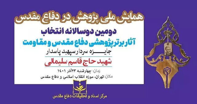 اختتامیه دومین دوره دوسالانه انتخاب آثار برتر پژوهشی دفاع مقدس و مقاومت «جایزه سردار سپهبد پاسدار شهید حاج قاسم سلیمانی» فردا چهارشنبه ۲۳ آذر ماه در موزه ملی انقلاب اسلامی و دفاع مقدس برگزار خواهد شد.