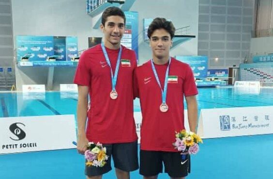سام واژیر و کیومرث اصلانی در مسابقه شیرجه هماهنگ از تخته ۳ متر عنوان سومی را بدست آوردند.