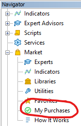 - انتخاب کنید خریدها: بازار-> خریدهای من
