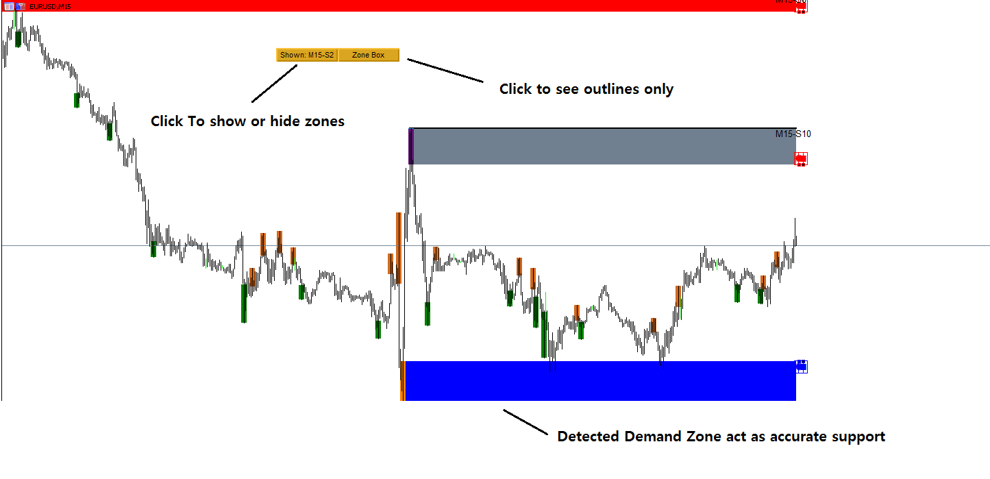 نشانگر منطقه تقاضای عرضه Ace یک شاخص قدرتمند منطقه عرضه و تقاضا است. می توانید از آن برای تجارت منطقه تقاضای عرضه اصلی یا تجارت منطقه تقاضای عرضه زاویه دار جدید استفاده کنید. در عین حال می توانید از آن به عنوان کشوی پشتیبانی و مقاومت بسیار دقیق استفاده کنید.