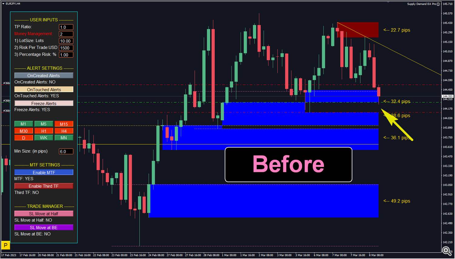 این همان تنظیماتی است که من امروز انجام دادم. من دو منطقه تقاضای 4 ساعته را دیدم که همپوشانی دارند و قیمت دقیقاً در منطقه همپوشانی بود.