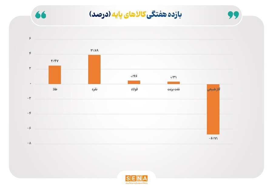 نرخ گاز طبیعی با کاهش شدید ۶.۷۱٪ مواجه شد که بزرگترین افت هفتگی در میان بازارهای بررسیشده است. این کاهش به دلیل افزایش تولید داخلی در آمریکا، کاهش تقاضا به علت هوای معتدلتر از حد انتظار در نیمکره شمالی، و ذخایر بالای گاز در کشورهای مصرفکننده رخ داده است.