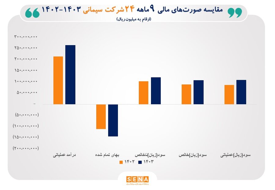 به گزارش خبرنگار پایگاه خبری بازار سرمایه ایران(سنا)، درگزارش ۹ ماه امسال شرکت‌ها که در کدال منتشر شده، درآمد عملیاتی شرکت‌های فعال در صنعت سیمان ۲۳.۵ درصد رشد کرده، و از ۲۱ همت در سال گذشته به ۲۶ همت در امسال رسید.