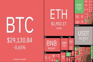 [ad_1] به گزارش هوشمند نیوز، بیت‌کوین با افت ۰.۶۵ درصدی در ۲۴ساعت گذشته به قیمت ۲۹هزار و ۱۳۱دلار معامله می‌شود. ارز بازار بیت‌کوین در حال حاضر ۵۶۴میلیارد دلار و نسبت دامیننس (نسبت ارزش بازار بیت‌کوین به کل ارزش بازار رمزارزها) برابر ۴۶.۴۶درصد است. اتریوم هم با افت ۰.۶درصدی ۱۹۰۳دلار قیمت خورده است. بایننس‌کوین، ریپل و