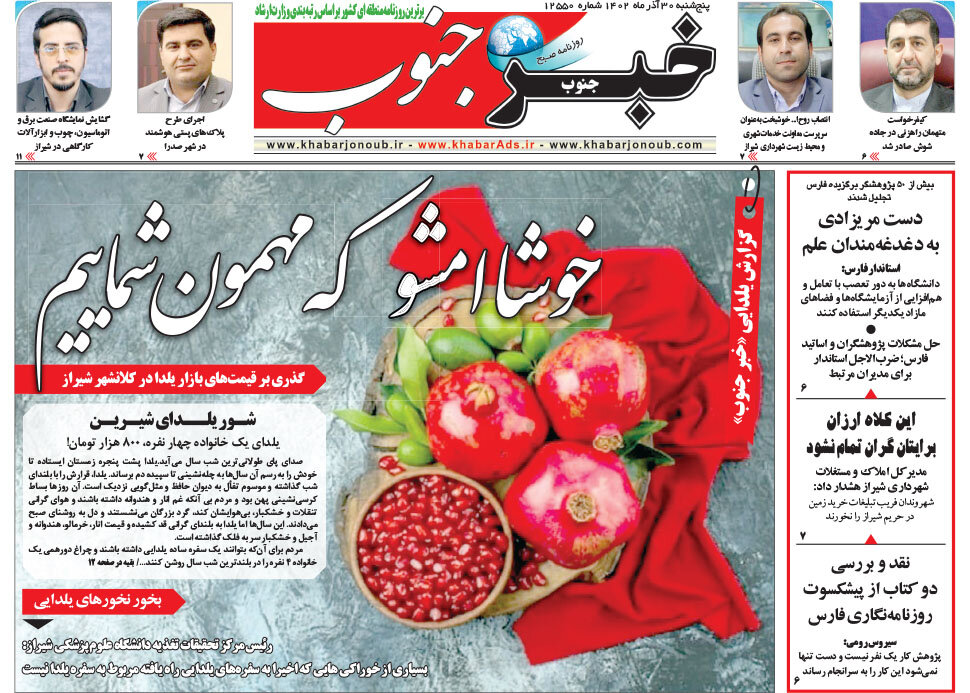 رنگ یلدا بر صفحه اول روزنامه های آخرین روز پاییز 1402