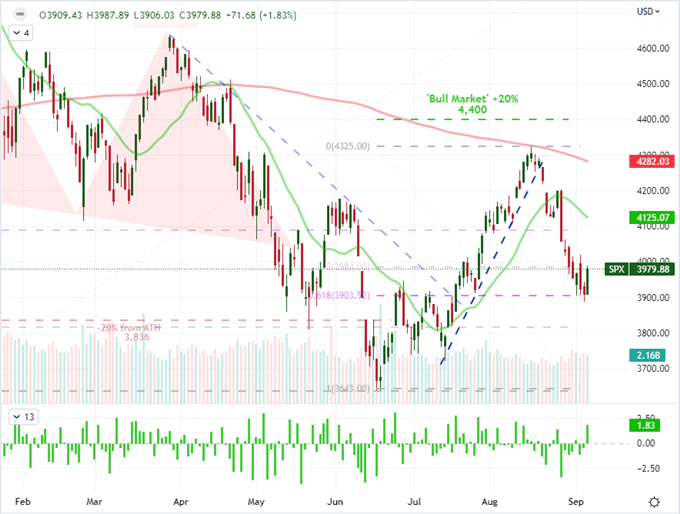تمرکز من در این جلسه گذشته – و حرکت به نیمه دوم هفته معاملاتی – بیشتر بر عملکرد دلار آمریکا و کمتر بر معیارهای سنتی «ریسک» است. این بدان معنا نیست که احساسات عمومی بازار برای بررسی کلی من از به روز رسانی سیستم مالی با ارزیابی فرصت های موجود، اهمیت کمتری دارد. در واقع، من گرایشهای ریسک را «تعادلکننده بزرگ» بهعنوان یک تأثیر مهم بدون توجه به تمایلات اساسی یا داراییهای مورد بحث در نظر میگیرم. در طول این جلسه گذشته، S&P 500 یک رالی قوی 1.8 درصدی را به ثبت رساند تا بزرگترین شارژ از 10 آگوست تا کنون افزایش یابد. با توجه به گستردگی حرکت طبقهبندیشده «ریسک در جریان»، به نظر میرسد اعتماد بازار وجود دارد، اما پسزمینه بنیادی ملموس بسیار کمی برای پیشنهاد وجود داشت. پیشبینیهای رشد، انتظارات سیاستهای پولی و چشمانداز فشارهای تورمی موذیانه، سه ماهه کمی برای اعتماد واقعی به وجود میآورند. گفته میشود، به نظر میرسد که یک دوره دشوار برای اعتقاد واقعی گاوهای نر جمعی است.