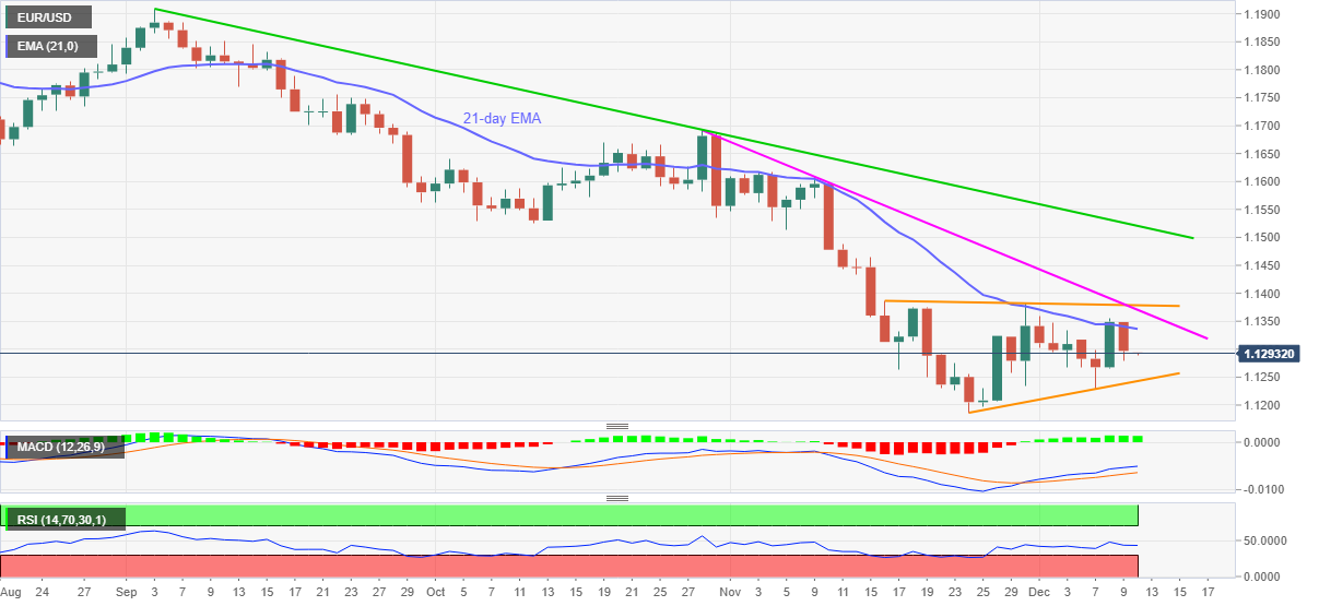 EUR/USD پس از ثبت بزرگترین سقوط روزانه در یک دو هفته اخیر، در حدود 1.1300 کاهش یافت. جفت ارز اصلی از میانگین متحرک نمایی 21 روزه روز قبل معکوس شد اما در اوایل صبح جمعه در آسیا در الگوی نمودار نزولی باقی می ماند.