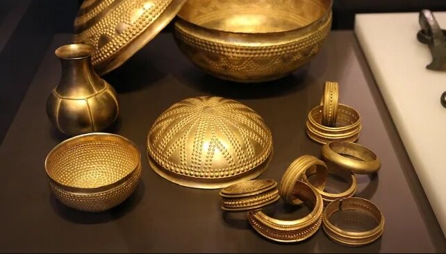 «لایو ساینس» نوشت، این گنجینه که با نام «گنجینه بیینا» شناخته میشود و در سال ۱۹۶۳ میلادی توسط باستانشناسان کشف شده است، ۵۹ شیء از جمله چند بطری، کاسه و زیورآلات نفیس را شامل میشود که از طلا، نقره، کهربا و آهن ساخته شدهاند.