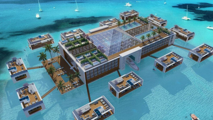 ۱۲ ویلای لوکس که توسط پانتونها به هم متصل شدهاند، هم برای فروش و هم برای اجاره مهمانان هتل در دسترس هستند و میتوانند با حداکثر سرعت ۶ مایل دریایی حرکت کنند. علاوه بر آن نکته جالب درباره این ویلاها این است که آنها مجهز به پنلهای خورشیدی هستند و به گونهای طراحی شدهاند که سازگار با محیط زیست باشند.