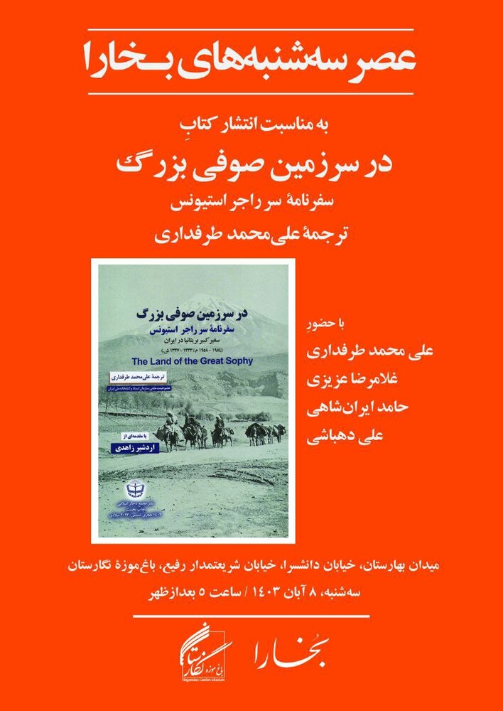 به گزارش ایسنا، بیستوهشتمین نشست از سلسله نشستهای عصر سهشنبههای مجلۀ بخارا به رونمایی از کتاب در سرزمین صوفی بزرگ (سفرنامه سر راجر استیونس) به ترجمه علیمحمد طرفداری اختصاص دارد.