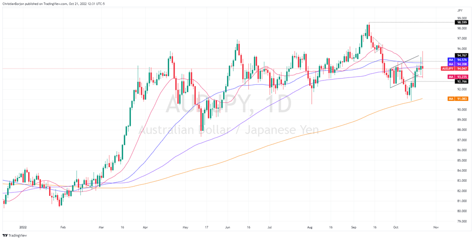 AUD/JPY به دنبال مداخله مقامات ژاپنی در بازارهای FX در محدوده وسیعی مشاهده شد. جفت متقاطع درک شده ریسک به بالاترین حد روزانه در حدود 95.73 رسید و سپس به سمت پایین ترین سطح روزانه خود در 93.08 سقوط کرد. در زمان نگارش این مقاله، AUD/JPY در 93.80 معامله می شود که کمتر از قیمت افتتاحیه آن 0.49٪ است.