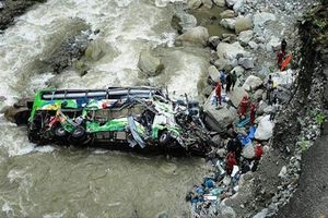 سقوط وحشتناک اتوبوس در اثر رانش زمین + فیلم