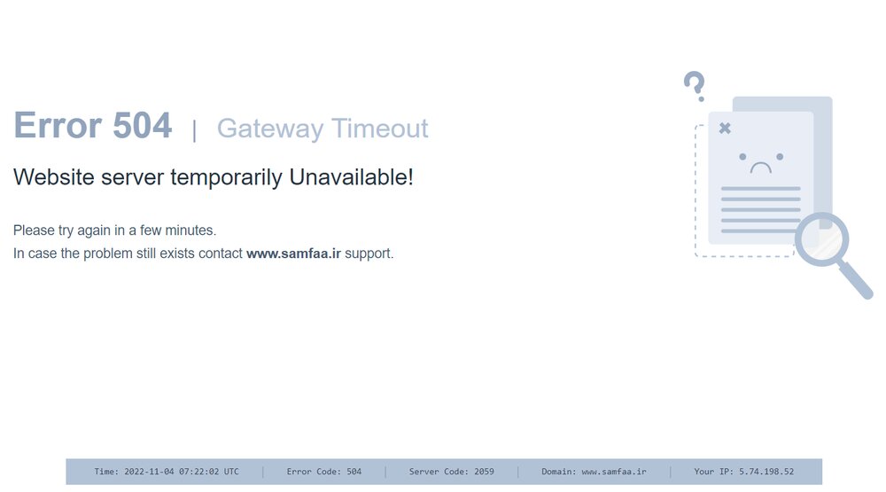 هنگام ورود به این سامانه با کد (Error ۵۰۴) مواجه میشوید که در ادامه نوشته است سرور این وبسایت در حال حاضر در دسترس نیست. امکان رخ دادن اختلال در دسترسی به سایتها بسیار زیاد است اما سامانه سمفا از آن دسته وبسایتهایی است که بسیار زیاد با این مشکل روبه رو میشود.