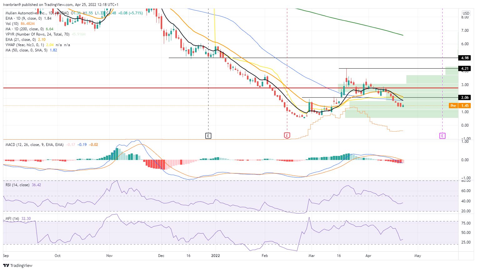 سهام MULN سرانجام در روز جمعه شکست خورد و با 5 درصد افزایش در 1.48 دلار بسته شد. این امر پس از یک سری زیان رخ داد که باعث شد سهام MULN از 4.18 دلار در ماه مارس حرکت کند، زیرا سرمایه گذاران به شدت موقعیت خود را کاهش دادند و شورت ها نیز وارد معارضه در MULN شدند. برای کسانی که نمی دانند Mullen Automotive یکی دیگر از سازندگان خودروهای برقی است که این بار در خارج از ایالات متحده مستقر است. طبق گفته ماریون پترلکان از مولن، این در مراحل اولیه است و تا سال 2024 یا 2025 تولید نمی شود.
