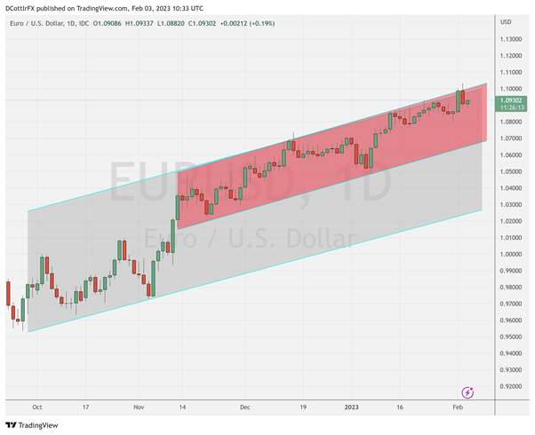 یک کانال باریک تر را می توان به وضوح مشاهده کرد، با این حال، نزولی آن اخیراً در 6 ژانویه آزمایش شد. اکنون در صورتی که گاوهای یورو اراده خود را برای ادامه تلاش در بالای کانال از دست بدهند، پشتیبانی احتمالی را در 1.0561 فراهم می کند. اگر این کار را انجام ندهند، مقاومت مهم احتمالاً در 1.11556، آخرین بالاترین سطح قابل توجه بالاتر از سطوح فعلی، وارد خواهد شد. که در 29 مارس ساخته شد.