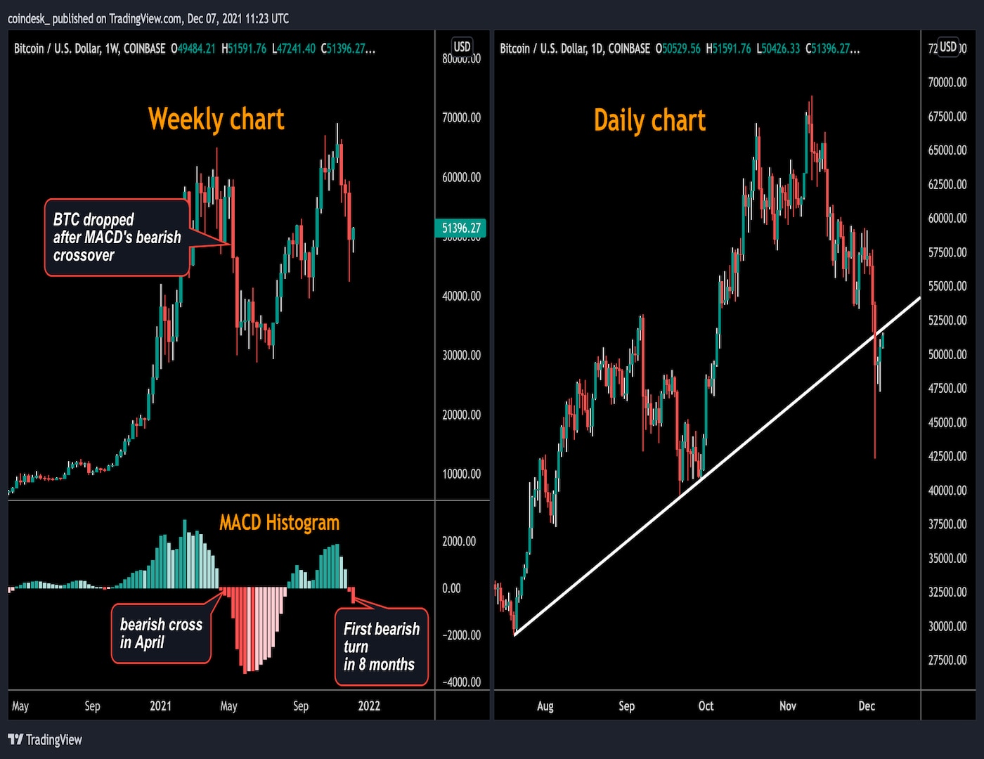 - کیتی استاکتون، موسس و شریک مدیریت Fairlead Strategies، در یک یادداشت تحقیقاتی هفتگی که روز دوشنبه با CoinDesk به اشتراک گذاشته شد، گفت: “MACD هفتگی برای اولین بار از آوریل در سیگنال “فروش” قرار دارد و ریسک را تا پایان سال افزایش می دهد. او نوشت: جایی برای فروش بیشتر تا جایی که دارایی در میان مدت شروع به فروش بیش از حد شود، وجود دارد.