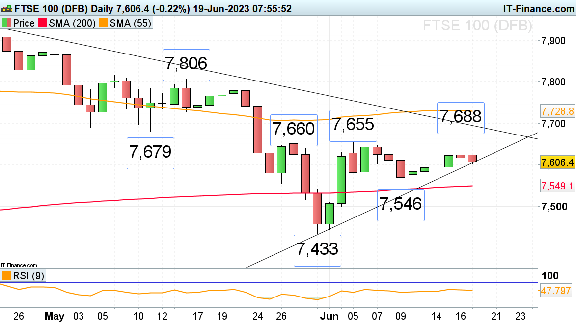 به دنبال شکست هفته گذشته FTSE 100 در شکستن منطقه مقاومتی 7655 تا 7679 خود بر اساس پایداری و الگوی شمعدانی Shooting Star در روز جمعه، به نظر می رسد این شاخص در کوتاه مدت تحت فشار باشد، دقیقاً مانند بازارهای آسیایی که یک شبه حالت محتاطانه داشتند.