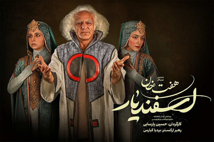 محسن حسینی در نقش «جاماسب پیشگو»، نیکا افکاری در نقش «بهآفرید» و سایه پارسایی در نقش «همای» خواهران اسفندیار در نمایش موزیکال «هفتخان اسفندیار» به کارگردانی حسین پارسایی حضور دارند.
