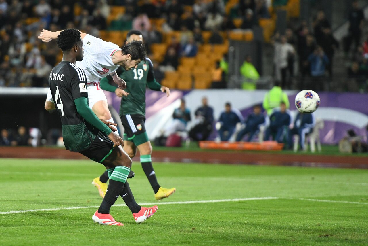 دقیقه ۲۷+۴۵: همکاری خوب بازیکنان ایران در پشت محوطه جریمه امارات با سانتر خوب قدوس همراه شد که سردار آزمون اشتباه نکرد و با یک ضربه سر دقیق توپ را وارد دروازه امارات کرد.
