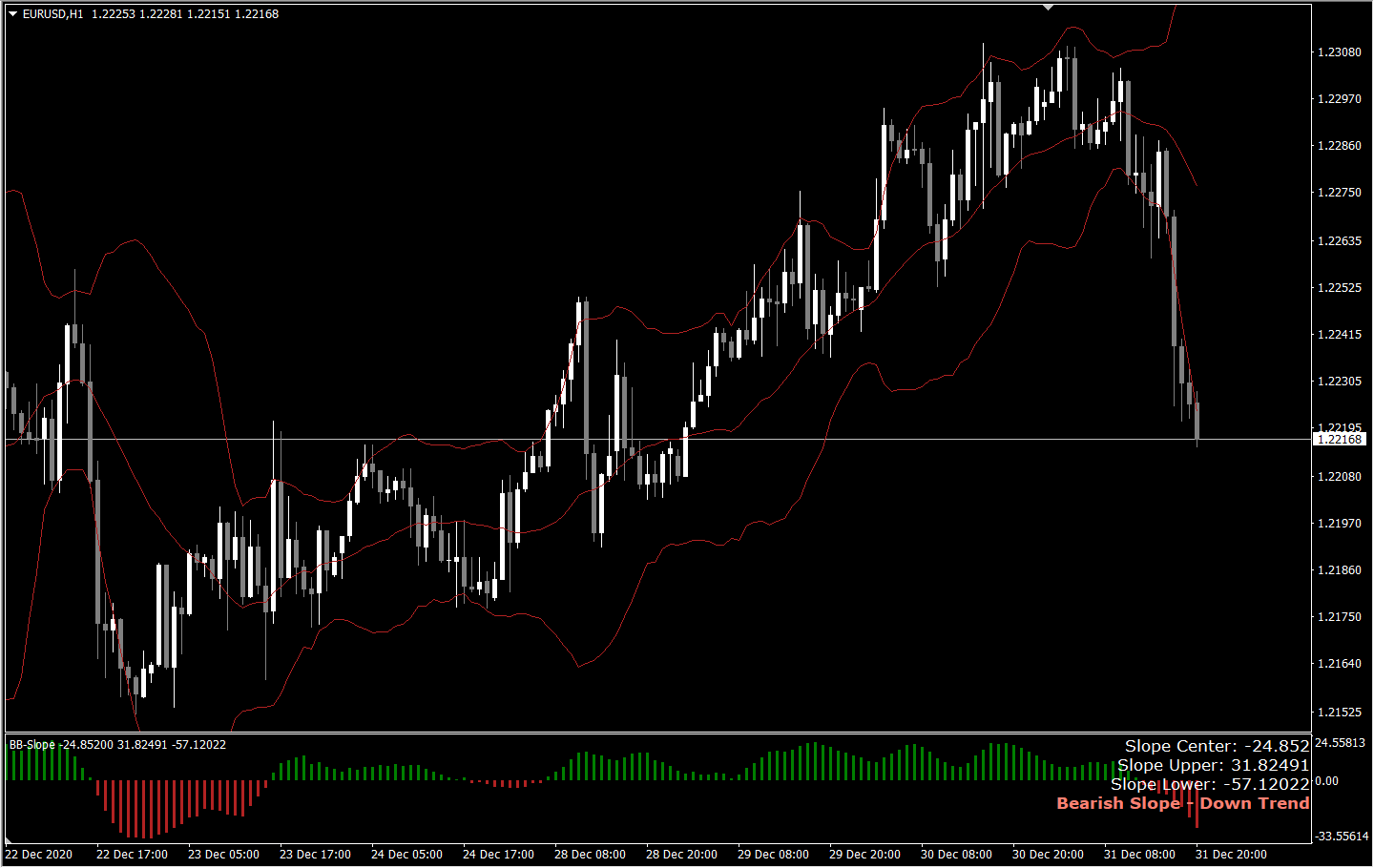 این یک نشانگر شیب برای اندیکاتور باندهای بولینگر است. شیب هایی را برای باند بالای BB، نوار مرکزی (اصلی) و باند پایینی فراهم می کند.
