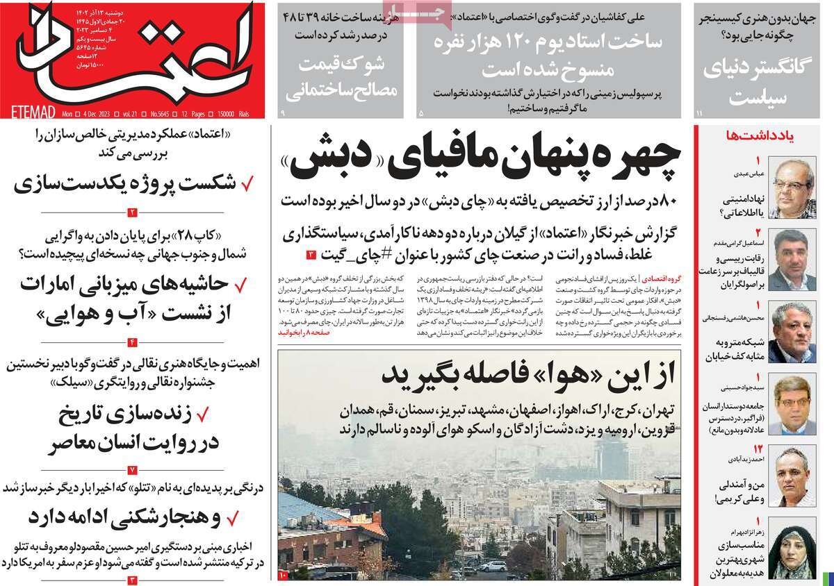 ابعاد فساد گسترده در واردات چای، تازه ترین تحولات غزه و… از تیترهای مطبوعات امروز است.