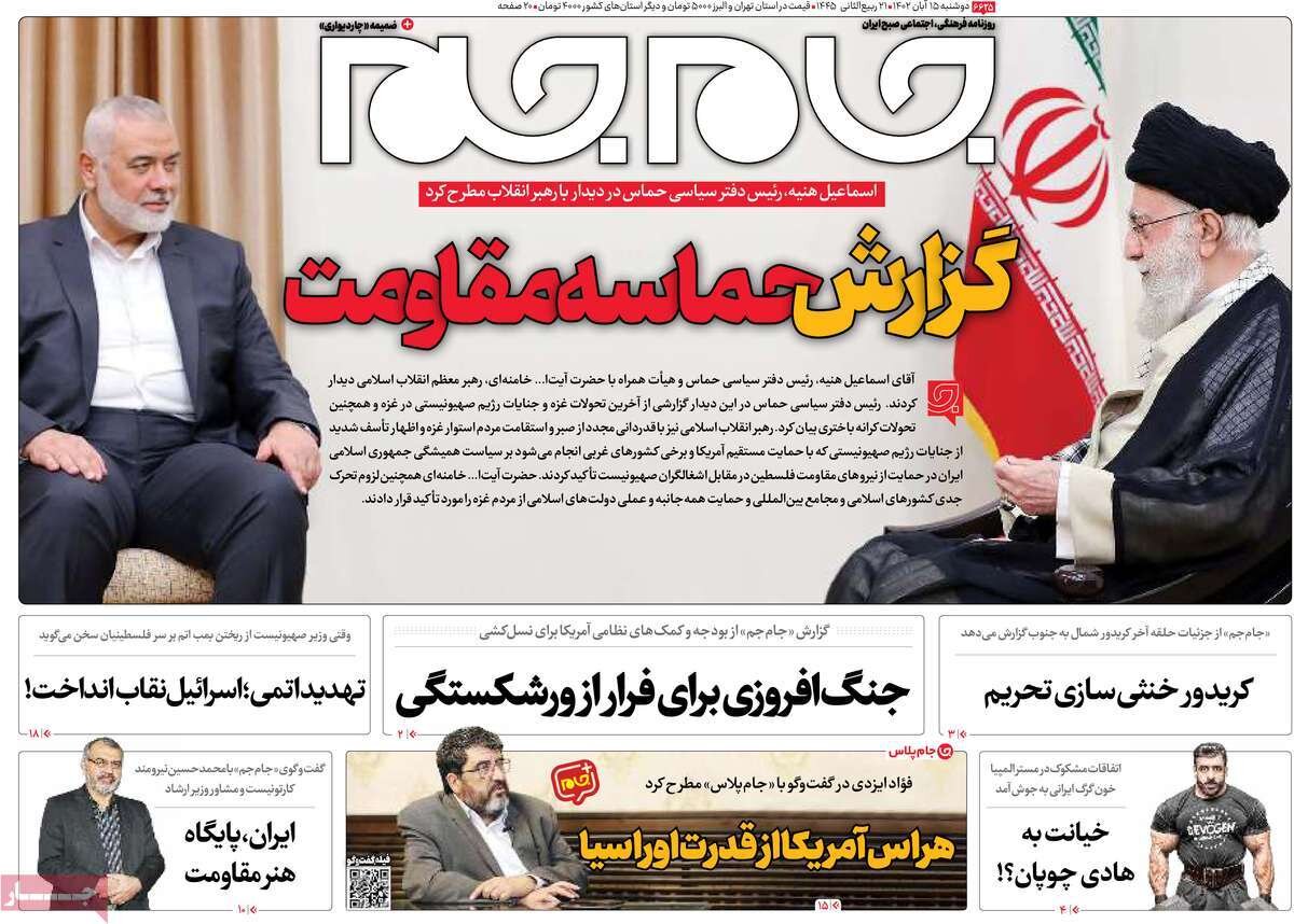 صفحه اول روزنامههای دوشنبه 15آبان 1402