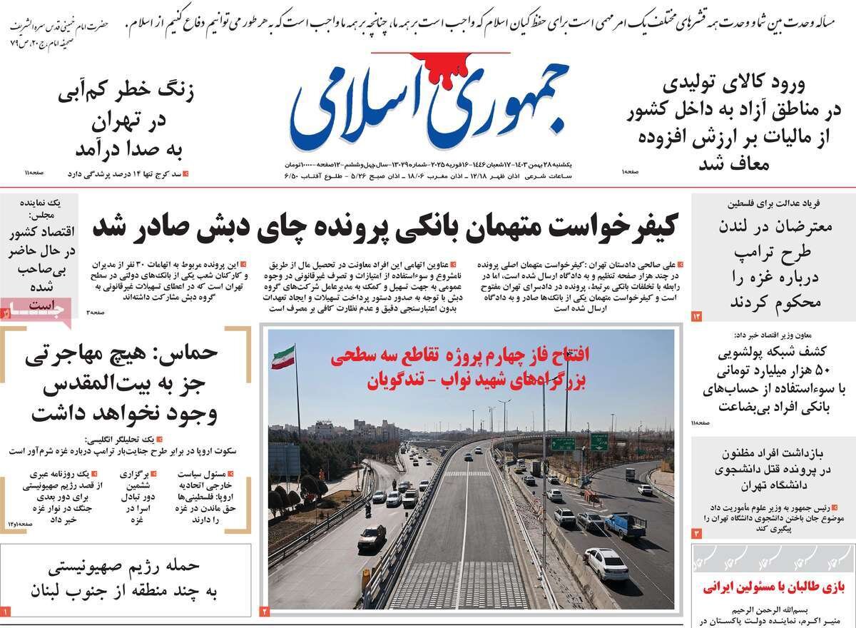 صفحه اول روزنامههای یکشنبه ۲۸ بهمن ۱۴۰۳