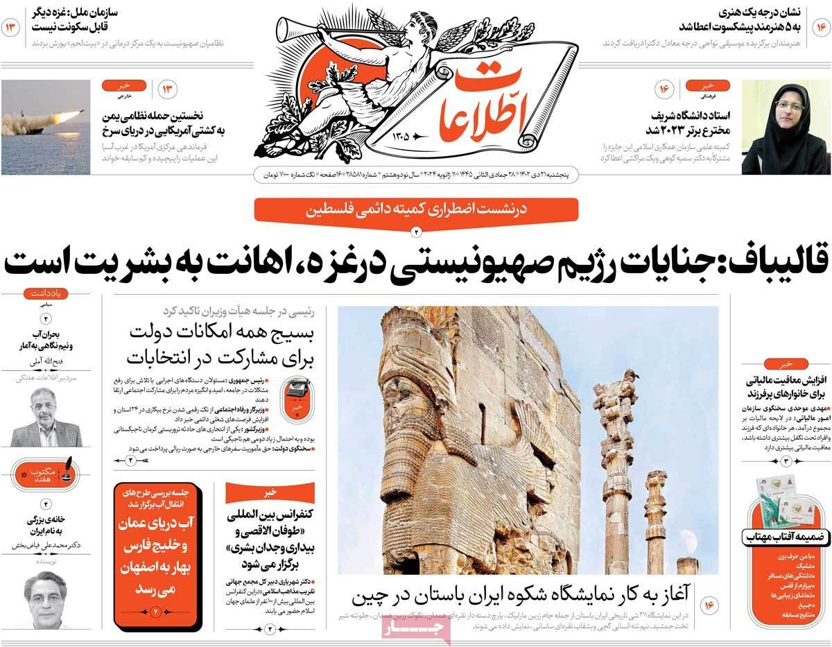 صفحه اول روزنامههای 5شنبه 21 دی 1402