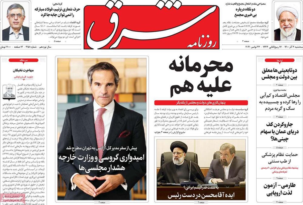 صفحه اول روزنامههای سهشنبه دوم آبان۱۴۰۰