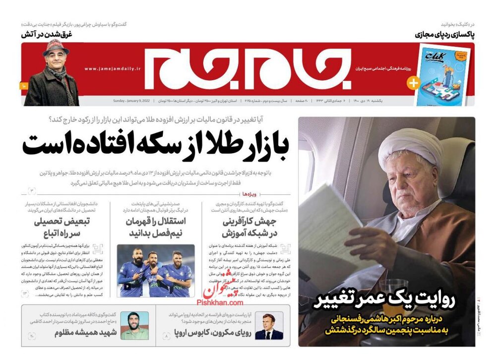 صفحه اول روزنامههای یکشنبه ۱۹دی۱۴۰۰/ آیتالله هاشمی باز عکس یک شد