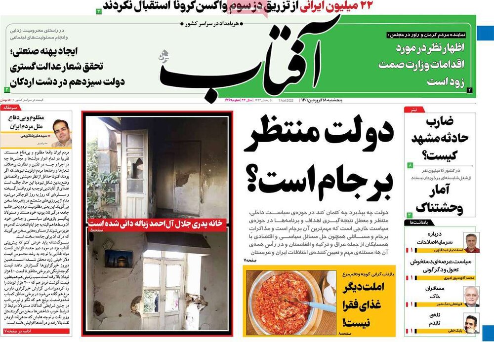 صفحه اول روزنامه های۵ شنبه ۱۸فروردین۱۴۰۱