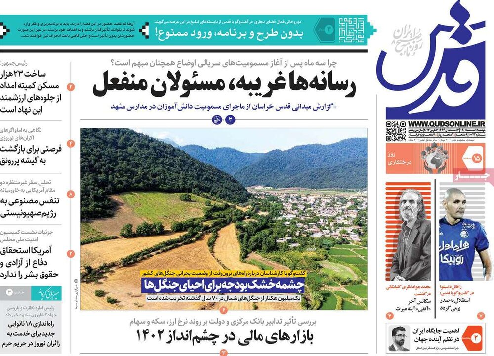 بازتاب سفر گروسی به ایران و ادامه موضوع مسمومیت دانش آموزان از تیترهای مطبوعات امروز است.