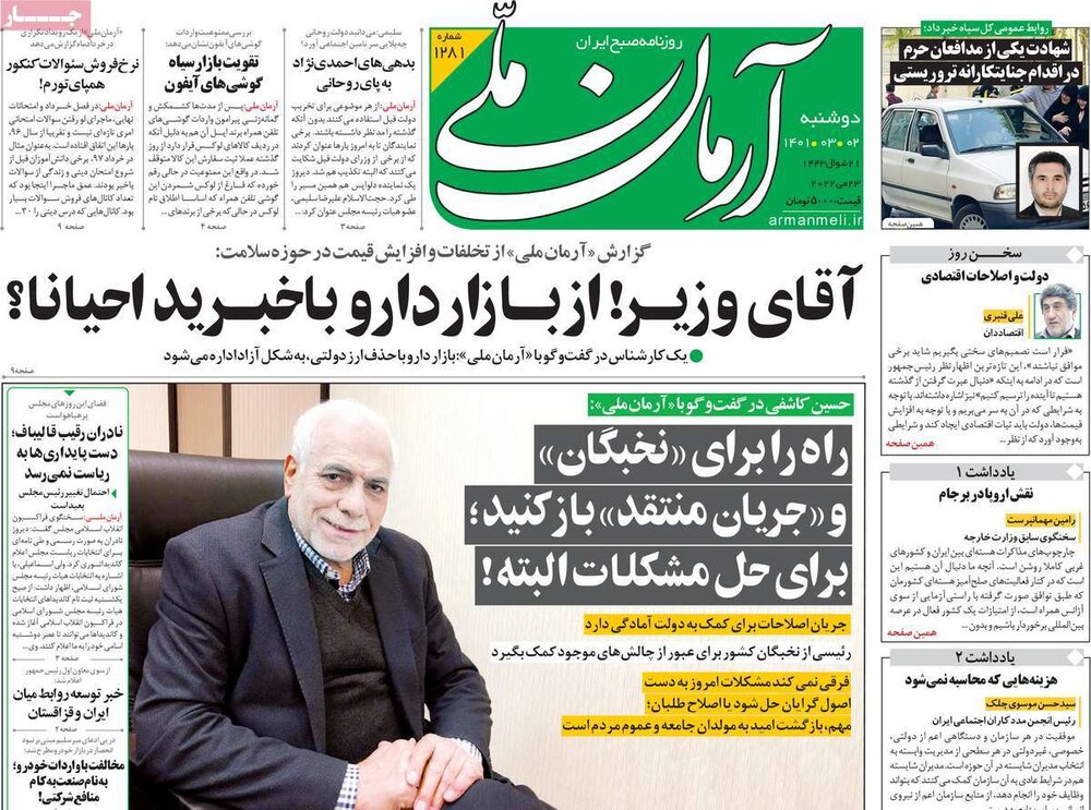 ترور یکی از فرماندهان مدافع حرم در تهران،مشکل گرانی دارو و بیمه ها از تیترهای امروز مطبوعات است.