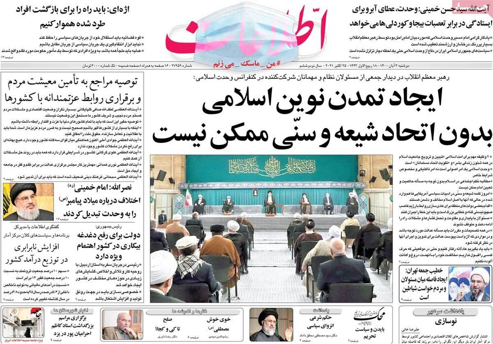 صفحه اول روزنامه های دوشنبه سوم آبان ۱۴۰۰