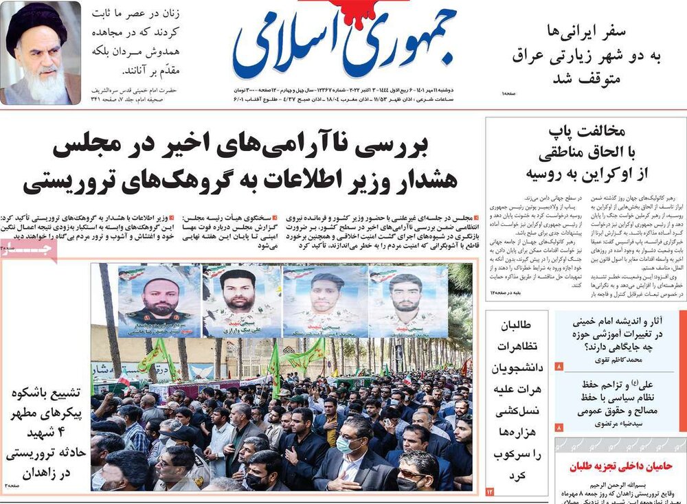 صفحه اول روزنامه های دوشنبه ۱۱ مهر ۱۴۰۱؛ ناآرامی‌ها و دلارهای بلوکه شده