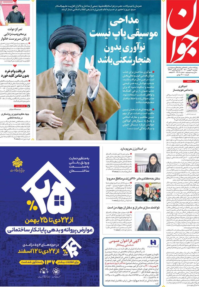 تذکرات رهبرمعظم انقلاب به مداحان در باره آسیب های مداحی، تبعات وام بدون ضامن،… از تیترهای مطبوعات امروز است.